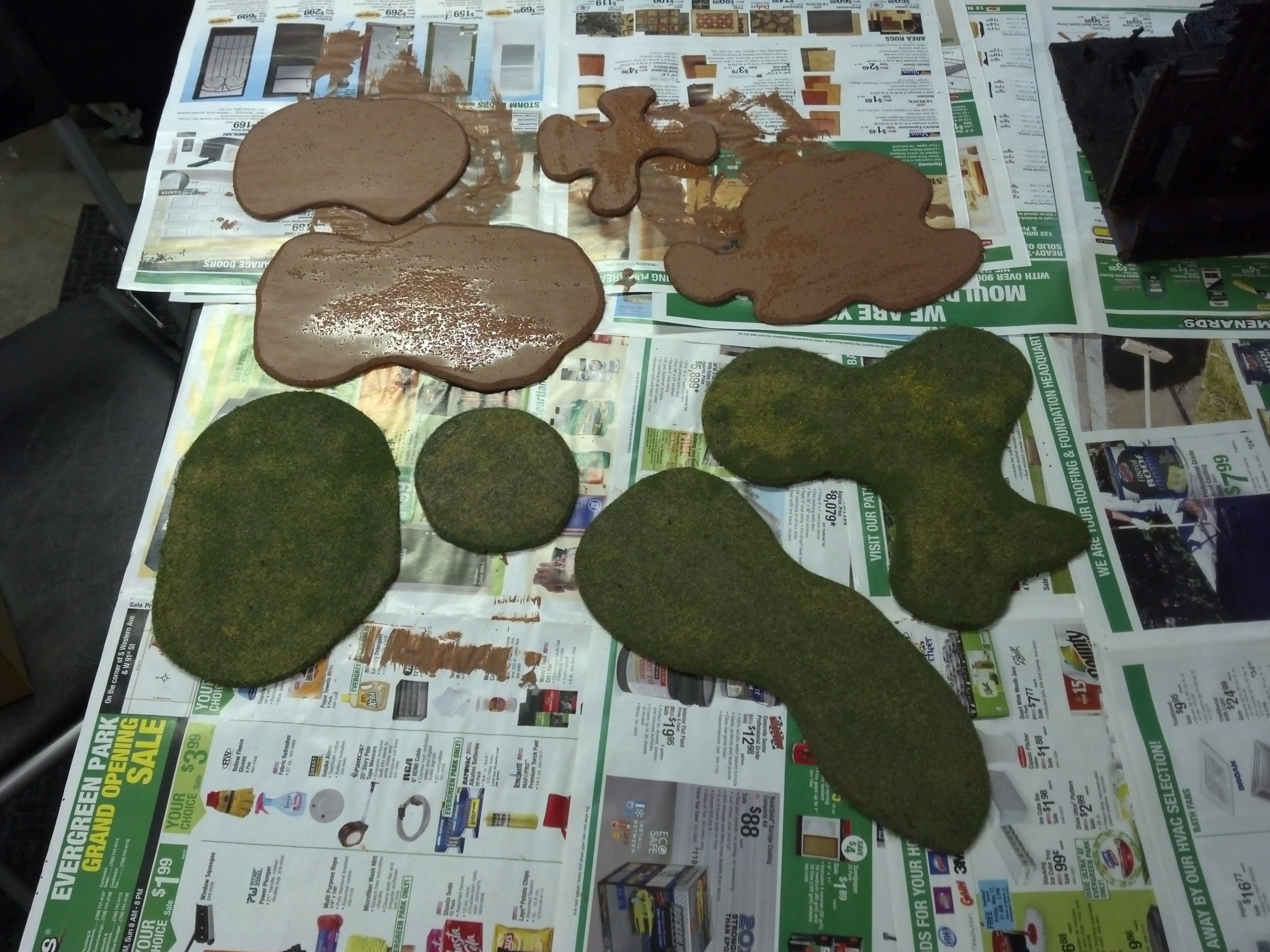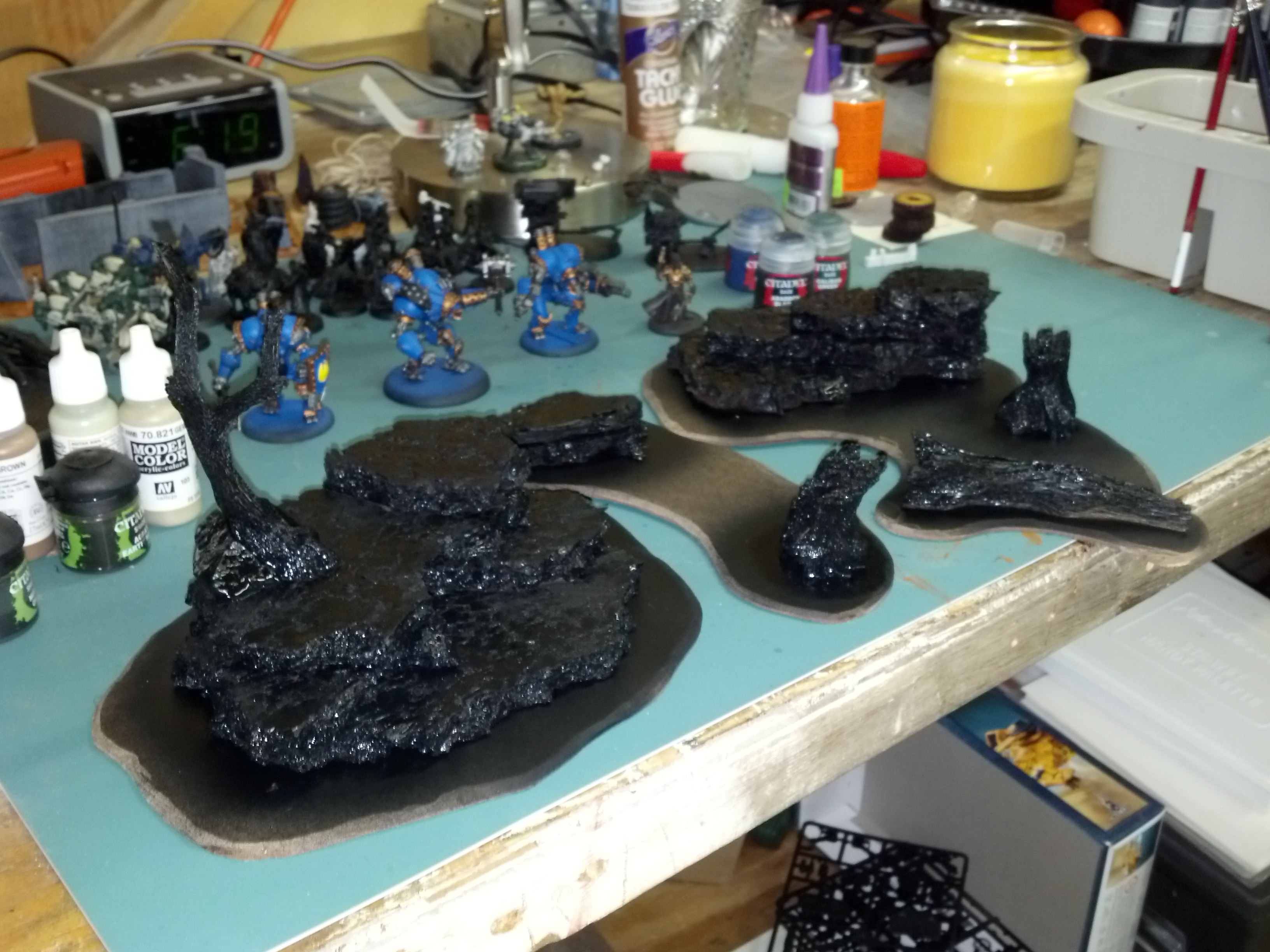 I cut these pieces of hardboard with my new jigsaw, and turned them into area terrain markers.