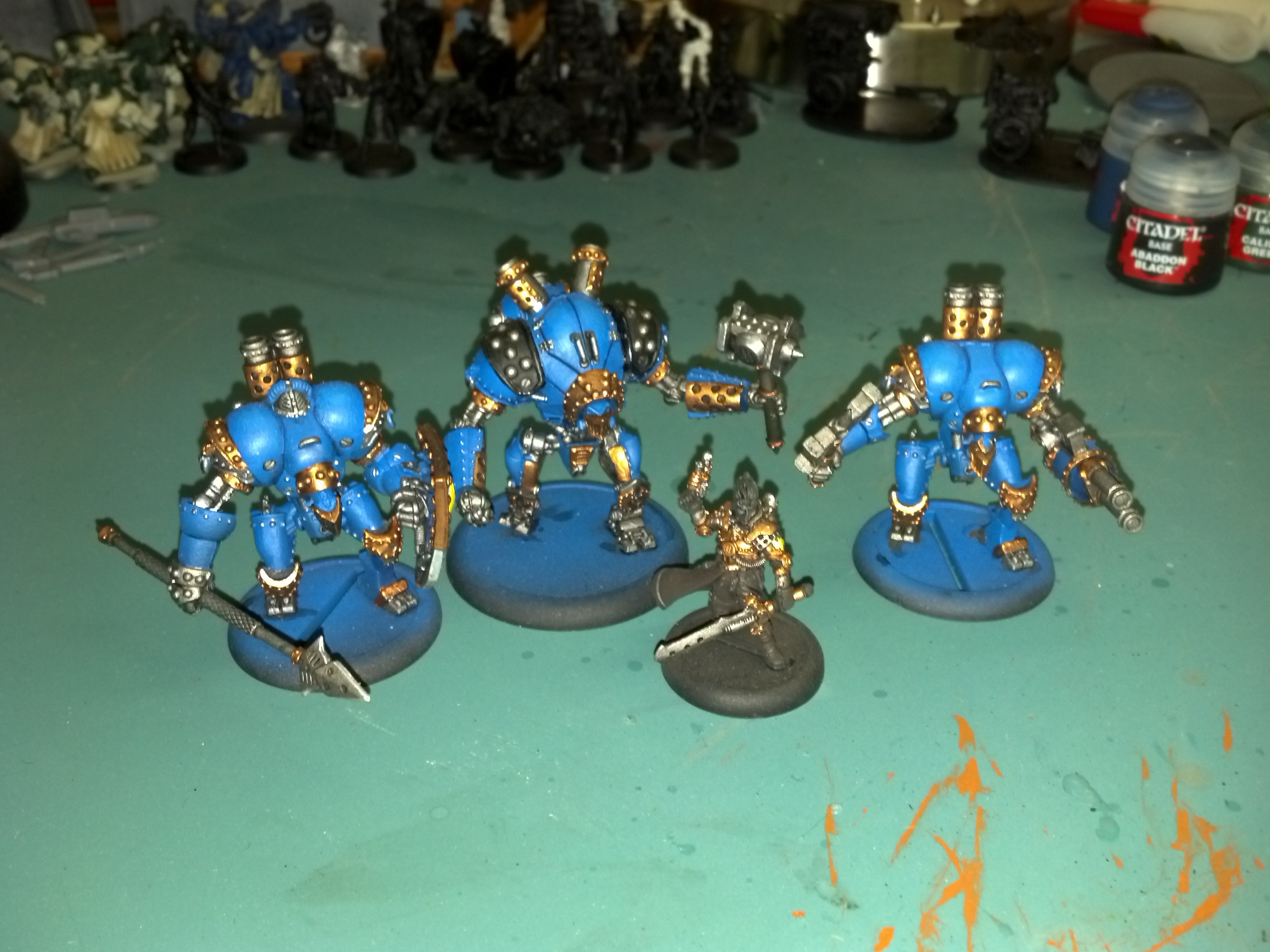 These guys got a brown wash on all gold bits, and a black wash on all silver parts. They need highlights now.