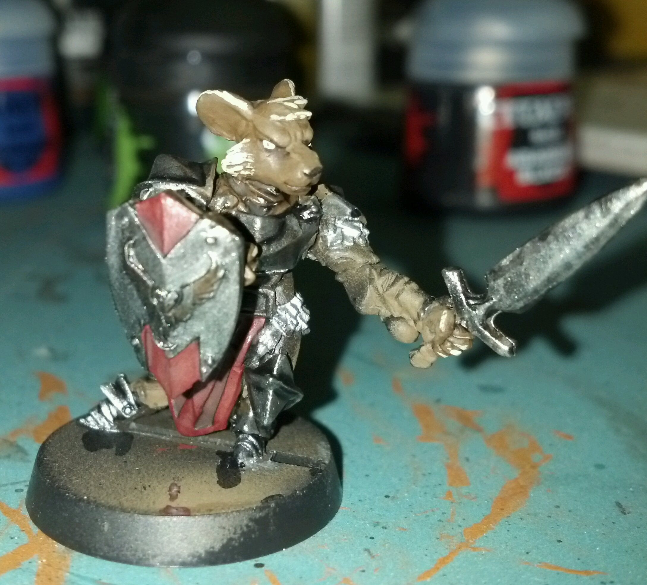 The Brushfire mouse knight still needs some detail work, but he is coming along nicely. I used light highlights on his hair in an attempt to give him an older look. His eyes came out great.