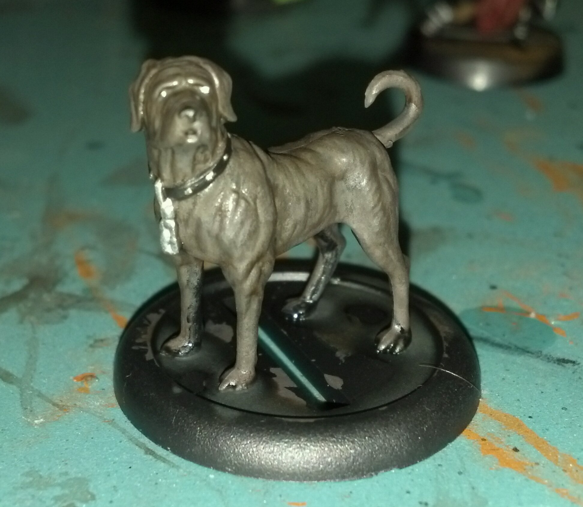 This dog is from Malifaux. He was unpainted when i started tonight. Now, he is almost done! I still need to do highlights. He has eyes also!