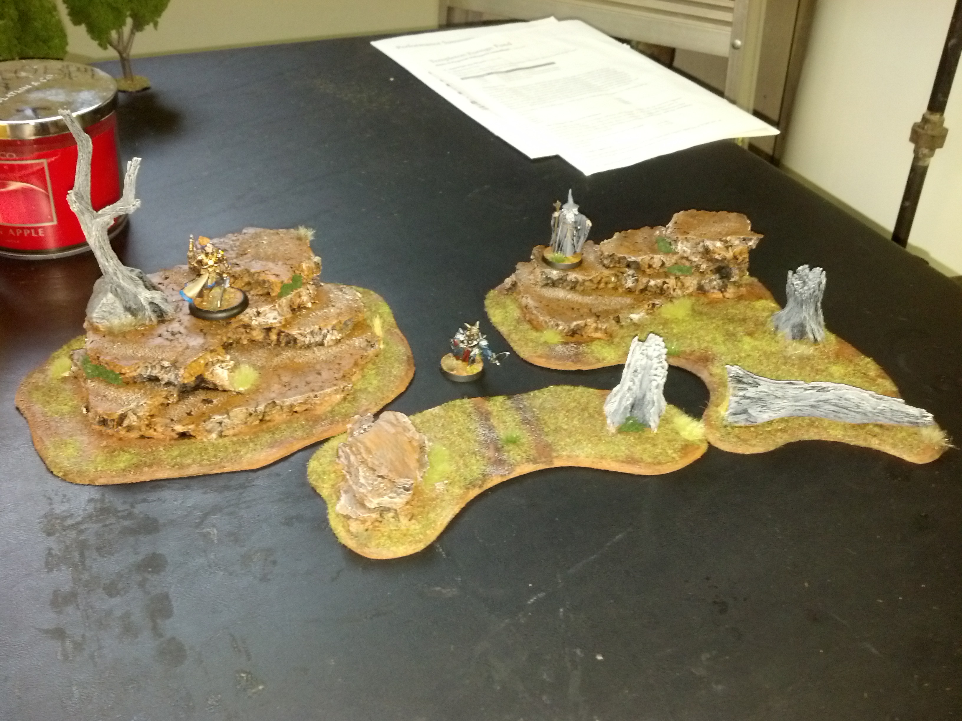 The cork rock pieces have been painted, flocked, and detailed. They are ready to use!