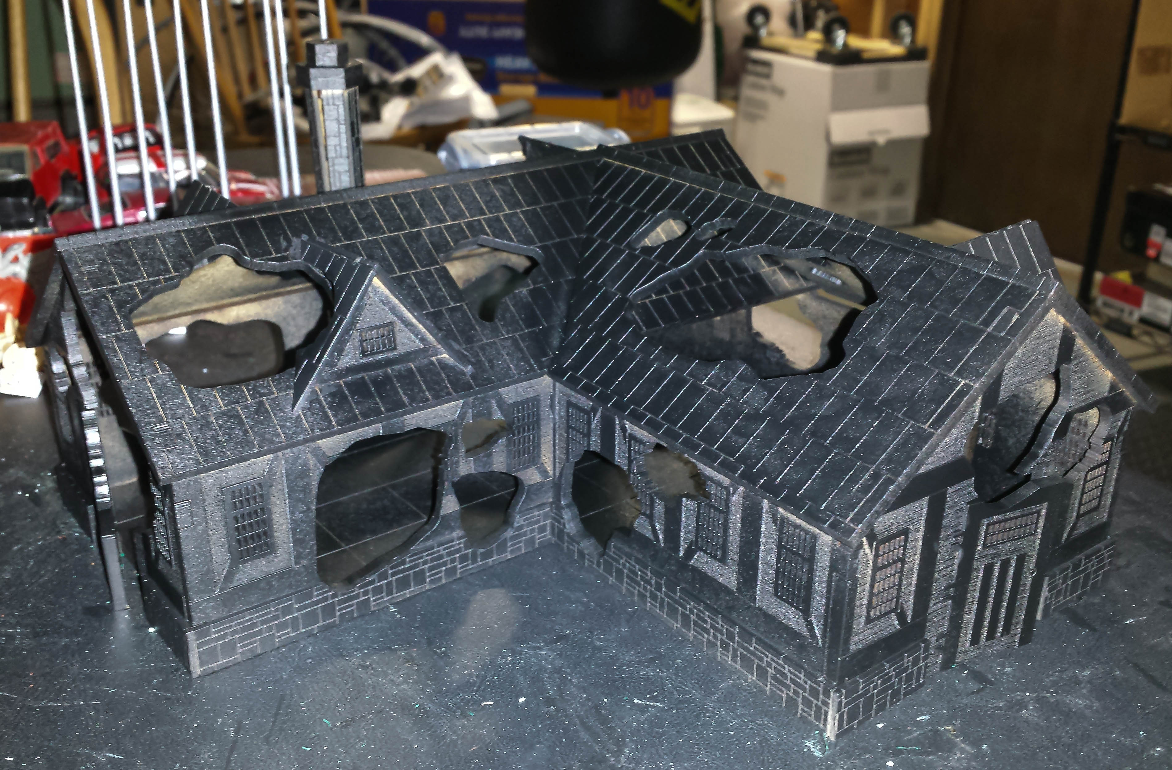 Here is my ruined Tudor building. It is fully assembled, and mostly primed.