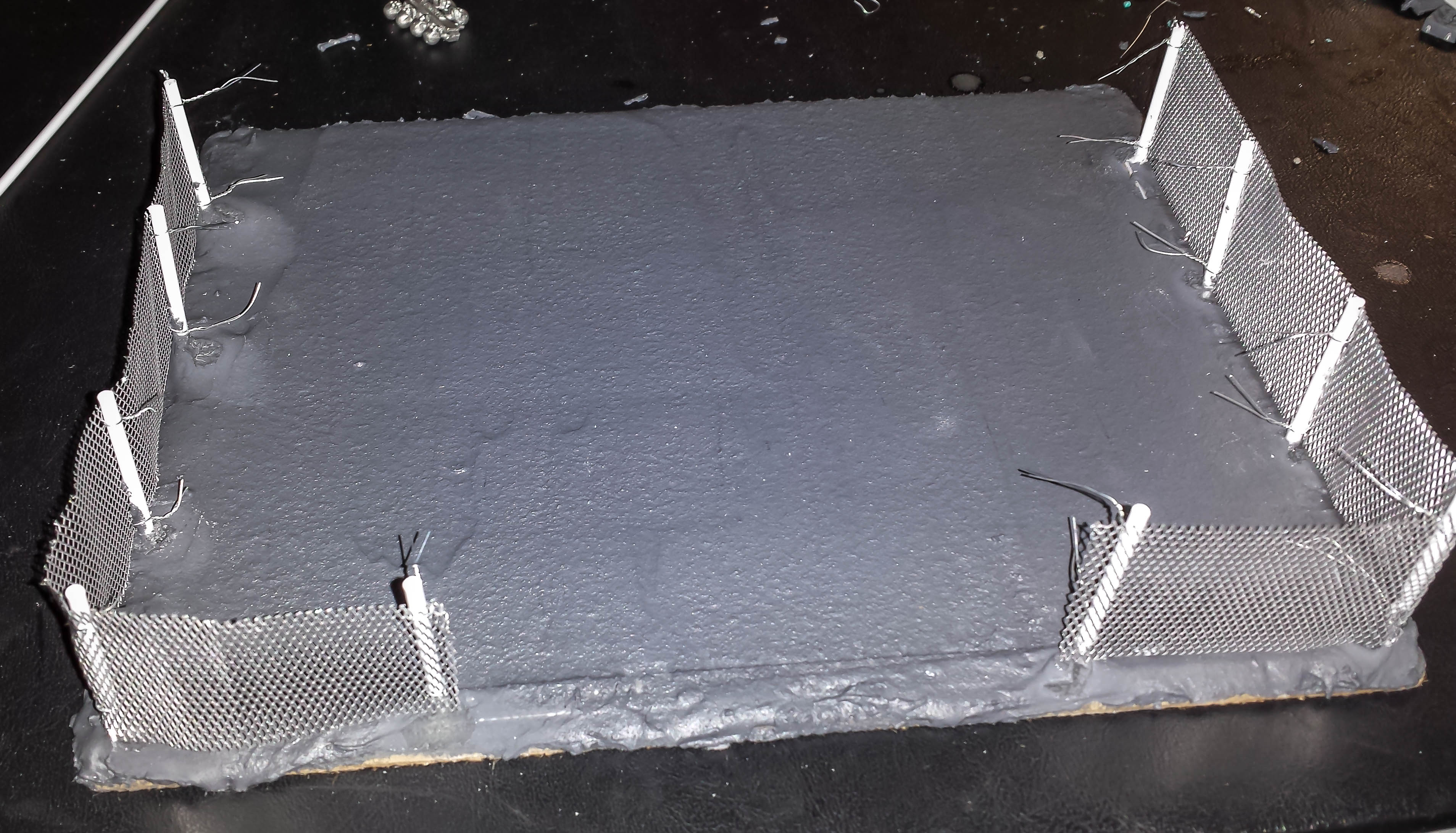 I’m sure there were easier way to do this, but I hand tied the fence in two places at each post. It took a lot of time, but I think the end result was worth it. After I finished hanging it, I added a drop of superglue at each knot point. Later today, I will trim the excess wire. I am still toying with the idea of doing a top bar along the fence, but I think it looks appropriately shabby as is. I still need to make the gates…