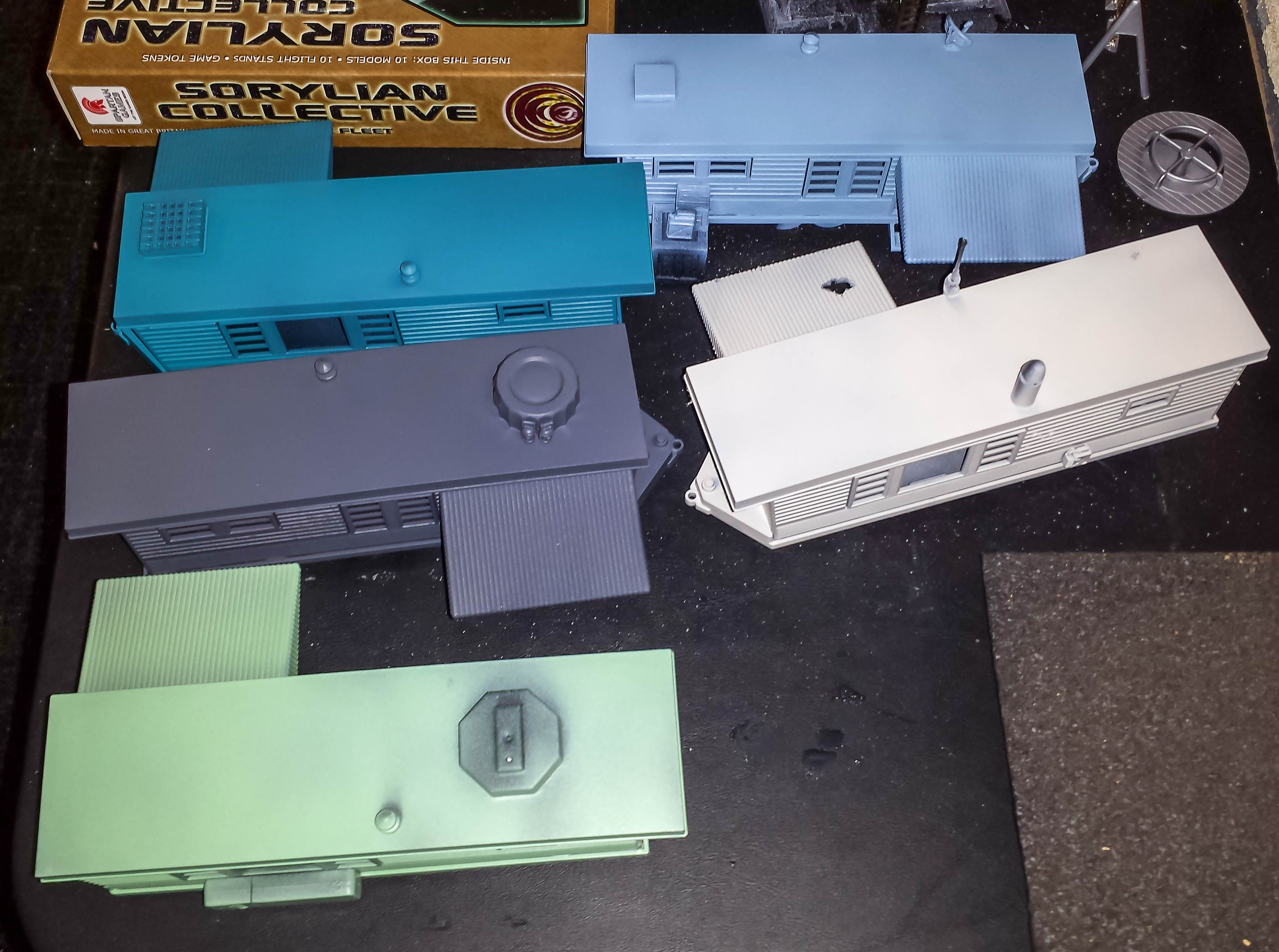 I also started basecoating the trailers. They are going to be bright and colorful before being coated in dirt and rust.