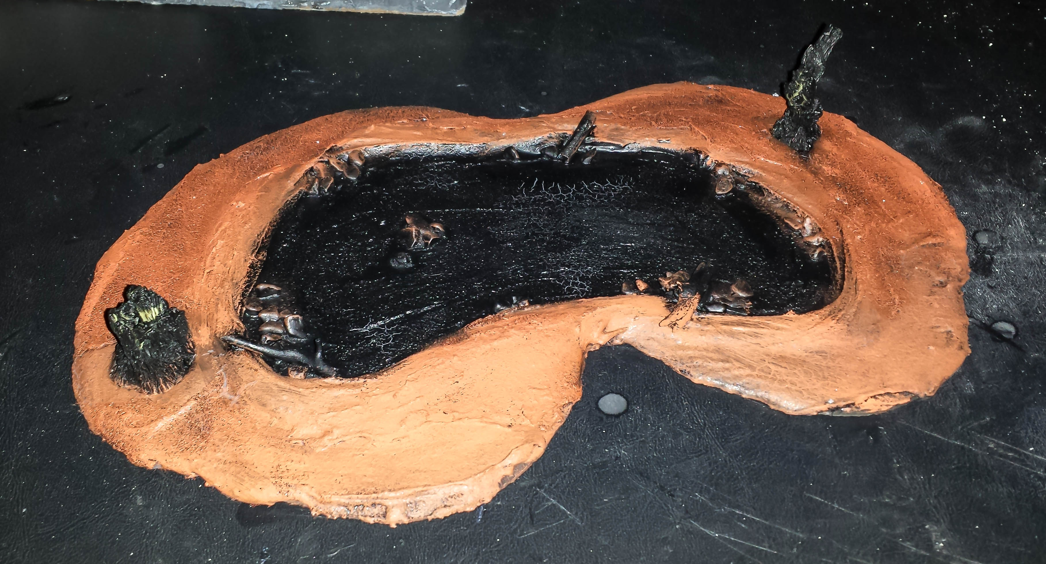 I started basecoating the pond. all the orange will be flocked. I just need to paint the rocks and trees, and glue the flock. Then it will be time to add green dyed water effects!
