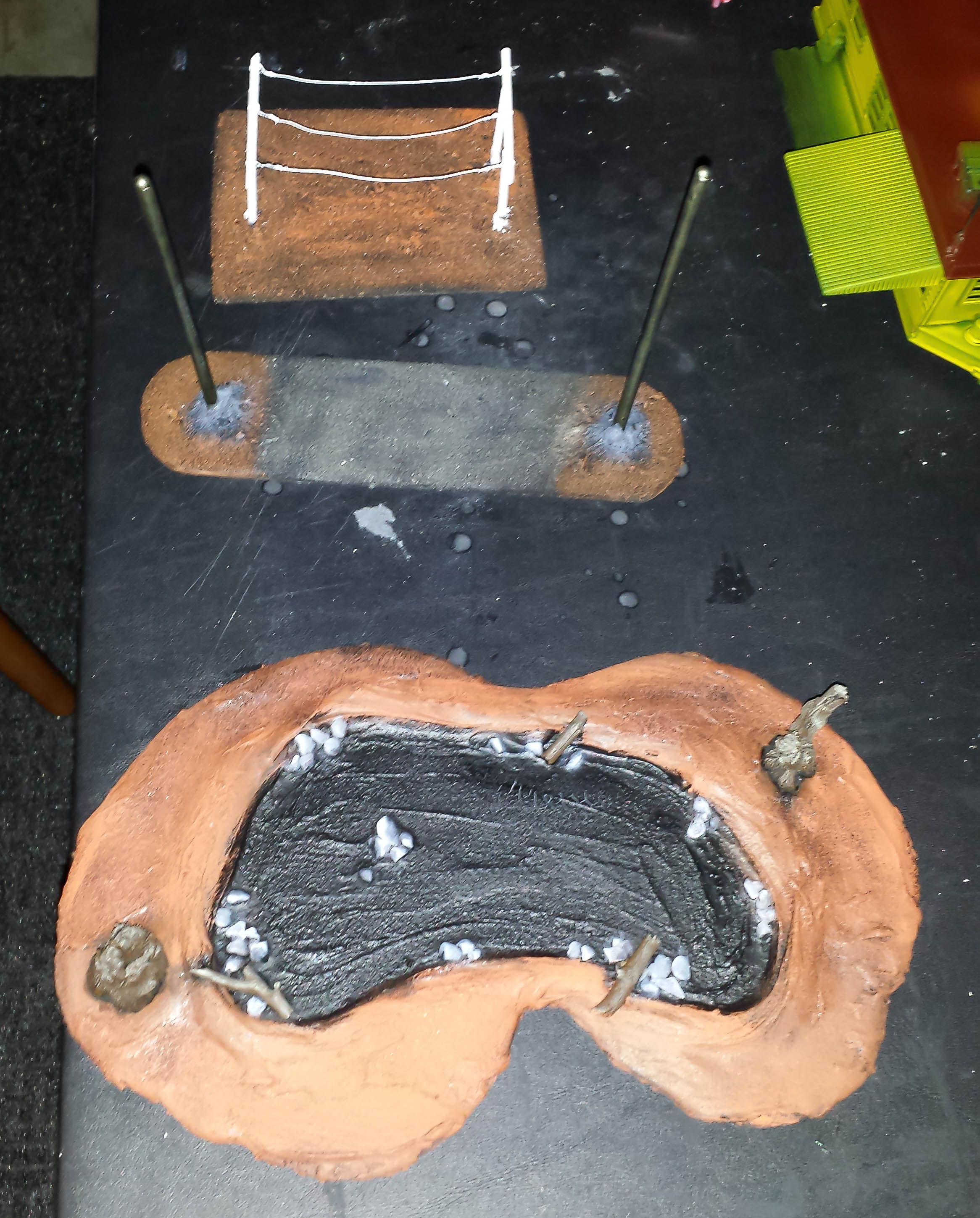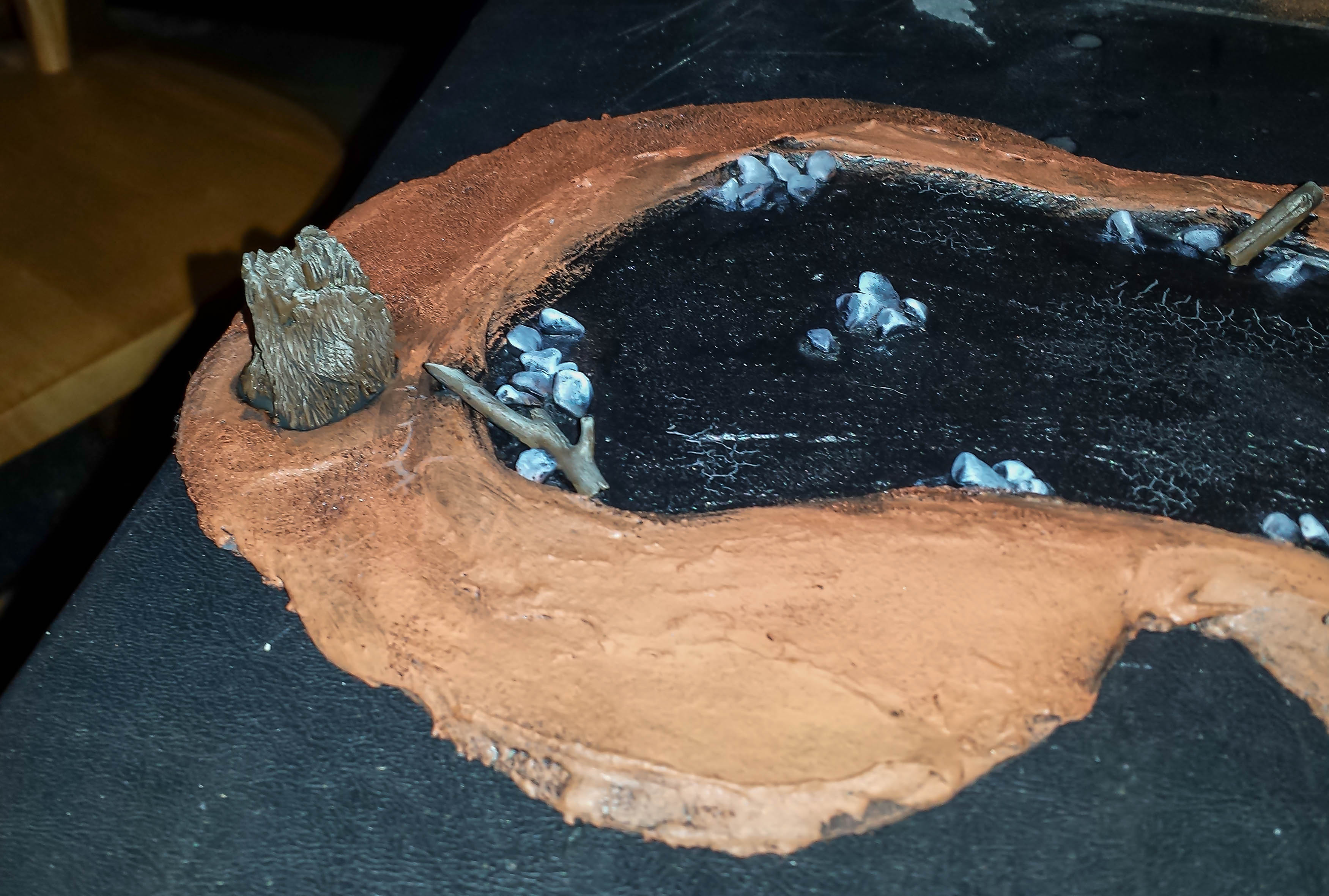 Here is a close up of the pond. I probably spent too much time on the rocks and sticks since they will be covered in green water effects.