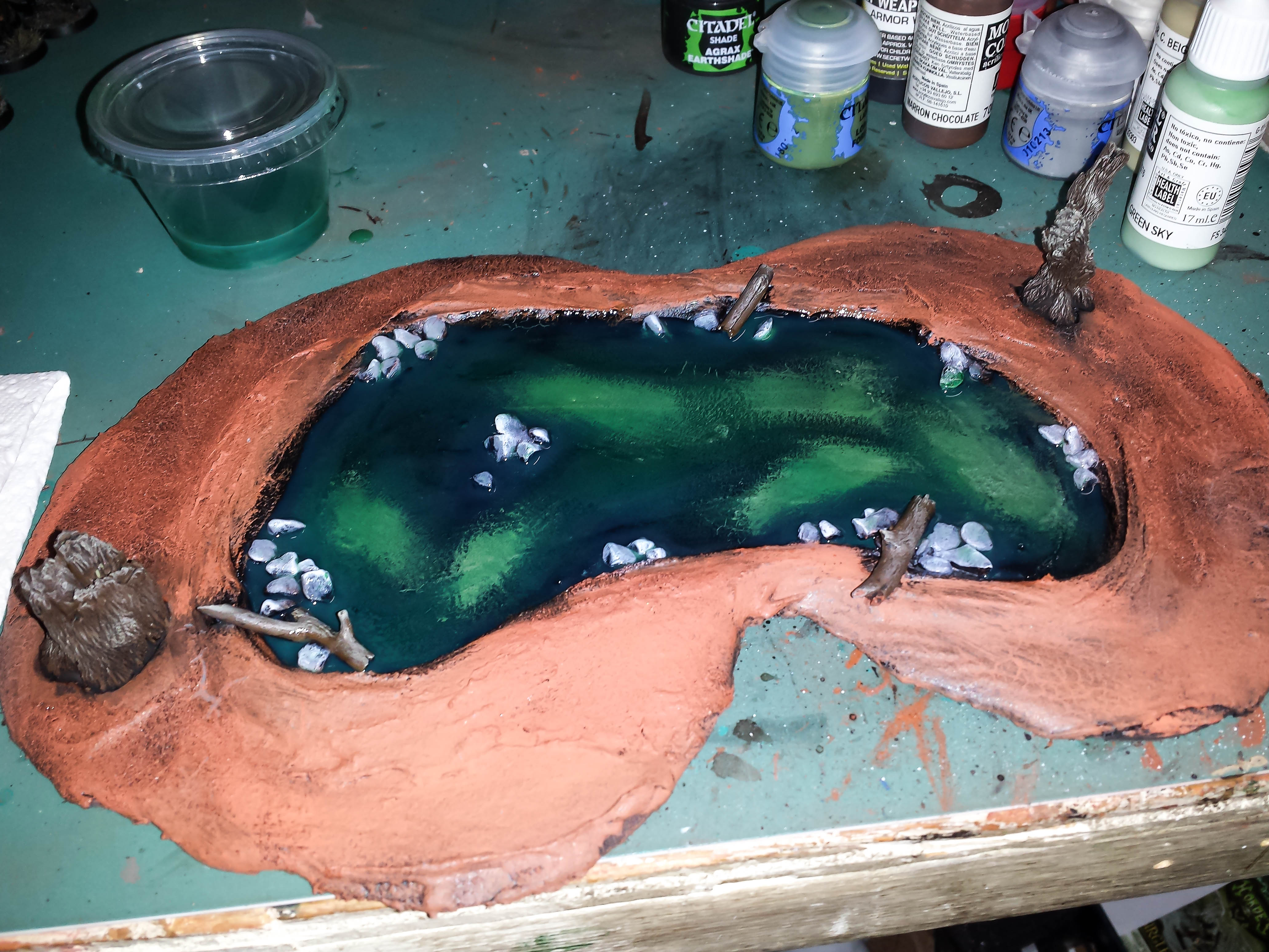 Here is the pond with coat 3. I went a little darker green with this layer.