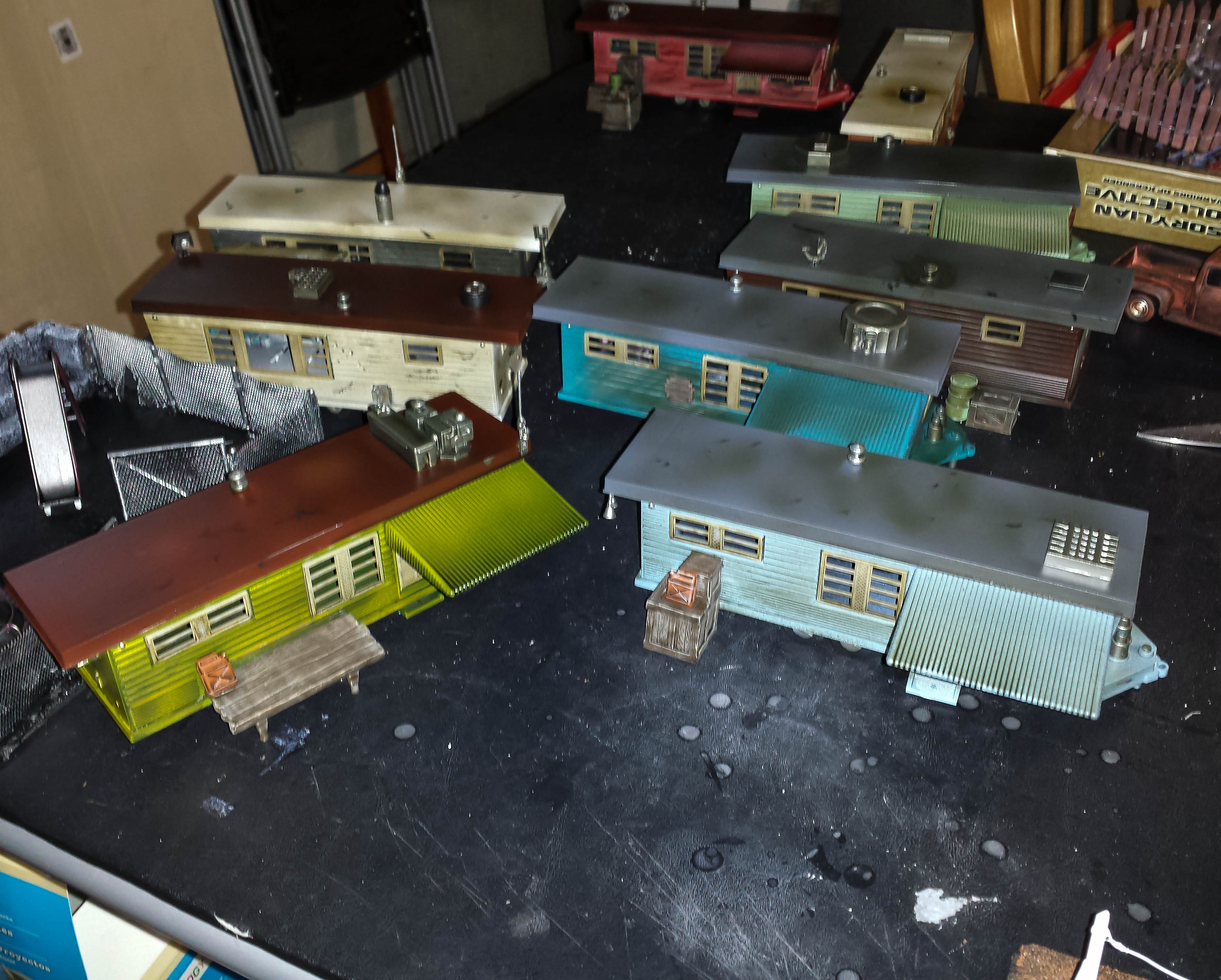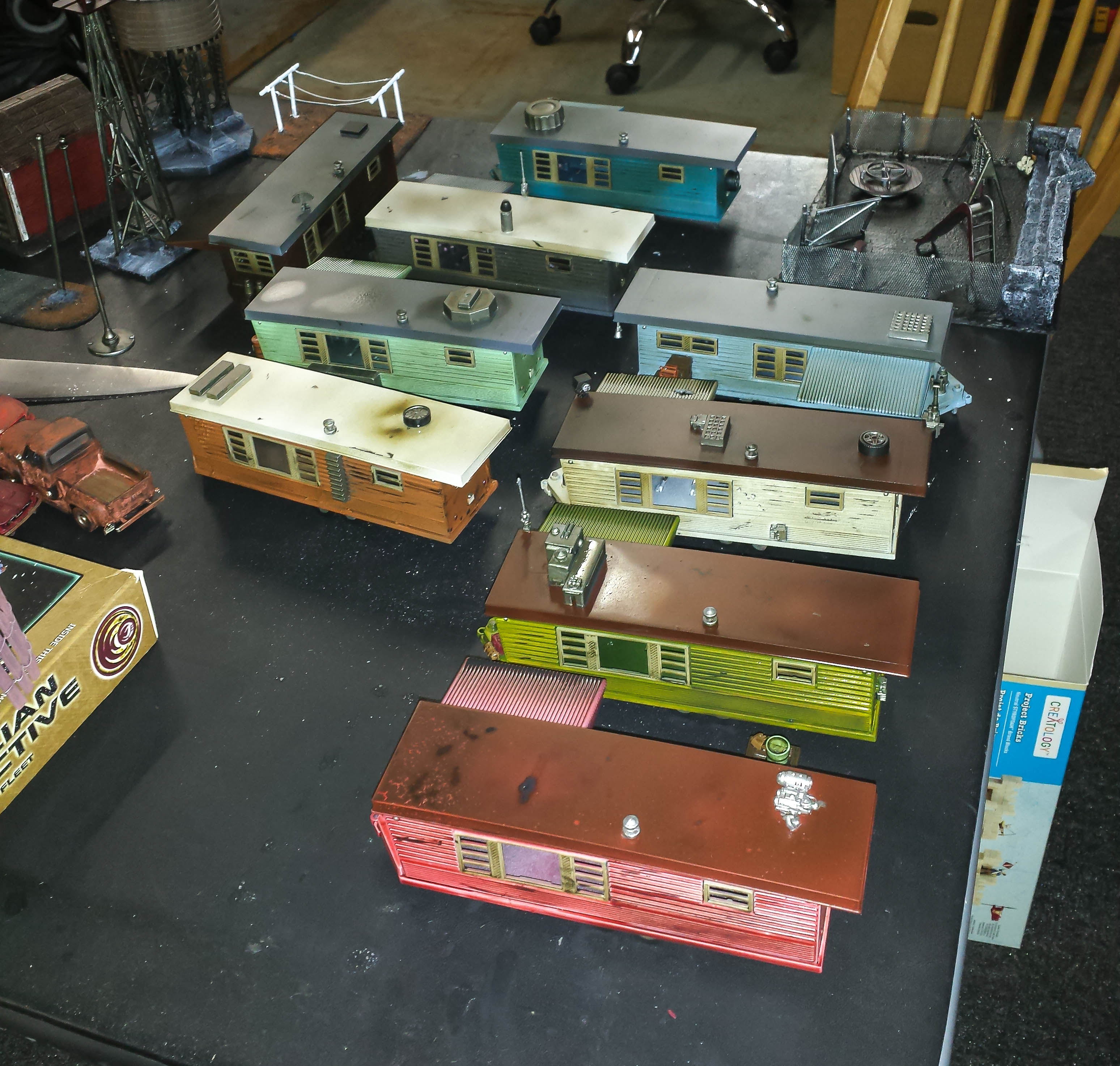 Here are shots of the trailers after a brown wash to make them look old and filthy.